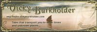 Vicky Burkholder, an author whose bookmark I picked up at the same conference, has some books out whose covers didn’t immediately appeal to me. She told me she did not design them. Ah, but her bookmark, which was her choice, spoke strongly of a romantic sensibility. It’s so romantic. Her Web site header is a sunset afterglow, which I find equally romantic.