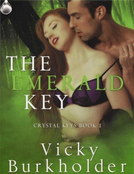 My second pick is The Emerald Key, by Vicky Burkholder. I’m a sucker for any mention of emerald, one of my favorite jewels and colors. This cover has a lot of green, so much that the title word “Emerald” gets a little lost. That’s a design issue that could be solved by doing the word in a slightly different color. If this book has a print edition, embossing “Emerald” and printing that word in foil would make a nice contrasting effect, although an expensive one. Because I’m looking at a promotional postcard, I can flip it to read the descriptive copy—and discover that this clinch cover, a classic in romances, is promoting a paranormal tale. Totally not what the cover tells me. Our gal who is being helped out of her clothing has magic powers and has a romance with a man who also has magic powers, and they’re on the run from a murderous stalker. Whew. That’s a load of suspense and danger, none of which is suggested by the cover. I assume the reason is that this story has tons of romantic moments and not many scary scenes. I hope.