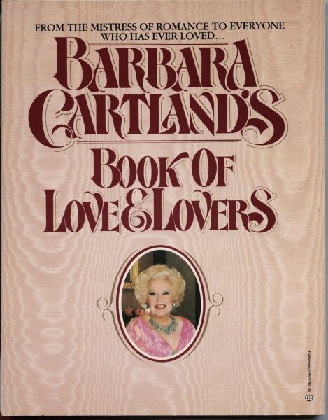 We heard a lot about Barbara Cartland because not only did she make public appearances, she also published other books and licensed a variety of commercial goods to capitalize on her worldwide fame. Jigsaw puzzles with art from the covers of her books. Sheets. More. The photos of celebrities she collected and put into her gossipy Barbara Cartland’s Book of Celebrities were probably all culled from public domain sources, but pre-Internet, you or I hadn’t a hope of finding them easily. So we bought that expensive, lavishly illustrated oversized paperback book, and then we bought Barbara Cartland’s Book of Love and Lovers, a full-color book filled with classic paintings depicting romantic scenes.