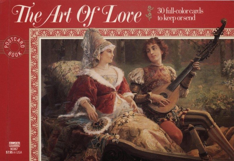 Barbara Cartland wasn’t the only person trying to make a buck on romance with compilations of romantic paintings with a little bit of text thrown in. The Art of Love, is a “book” composed entirely of thirty postcards depicting 19th century paintings, some sentimental, some Re-Raphaelite.